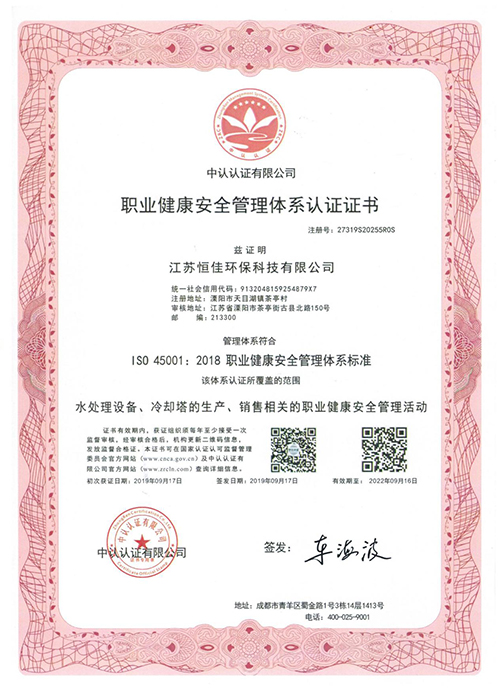 江蘇恒佳環保科技有限公司成立于2012.3.23日,座落于風景優美,盛享江南魚米之鄉的天目湖湖畔;是一家專業從事循環水系統和水處理系統設備產品為主的現代化科技企業。